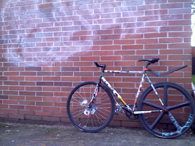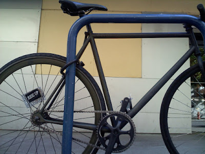 OUR BOY PATRICK FROM PEDAL CONSUMPTION HAS BEEN IN THE WORKS WITH LEADER FOR A WHILE ON A MYSTERY FRAME... WE'VE ALL BEEN WAITING FOR IT, KNOWING HIS STYLE TO BE RIGHT IN STEP WITH OURS... AND IT'S LOOKING LIKE WORKING PROTOTYPES ARE SURFACING... FINALLY! BELOW ARE A COUPLE SHOTS OF THE NEW STREET BEAST... YOU CAN ALMOST TASTE IT.